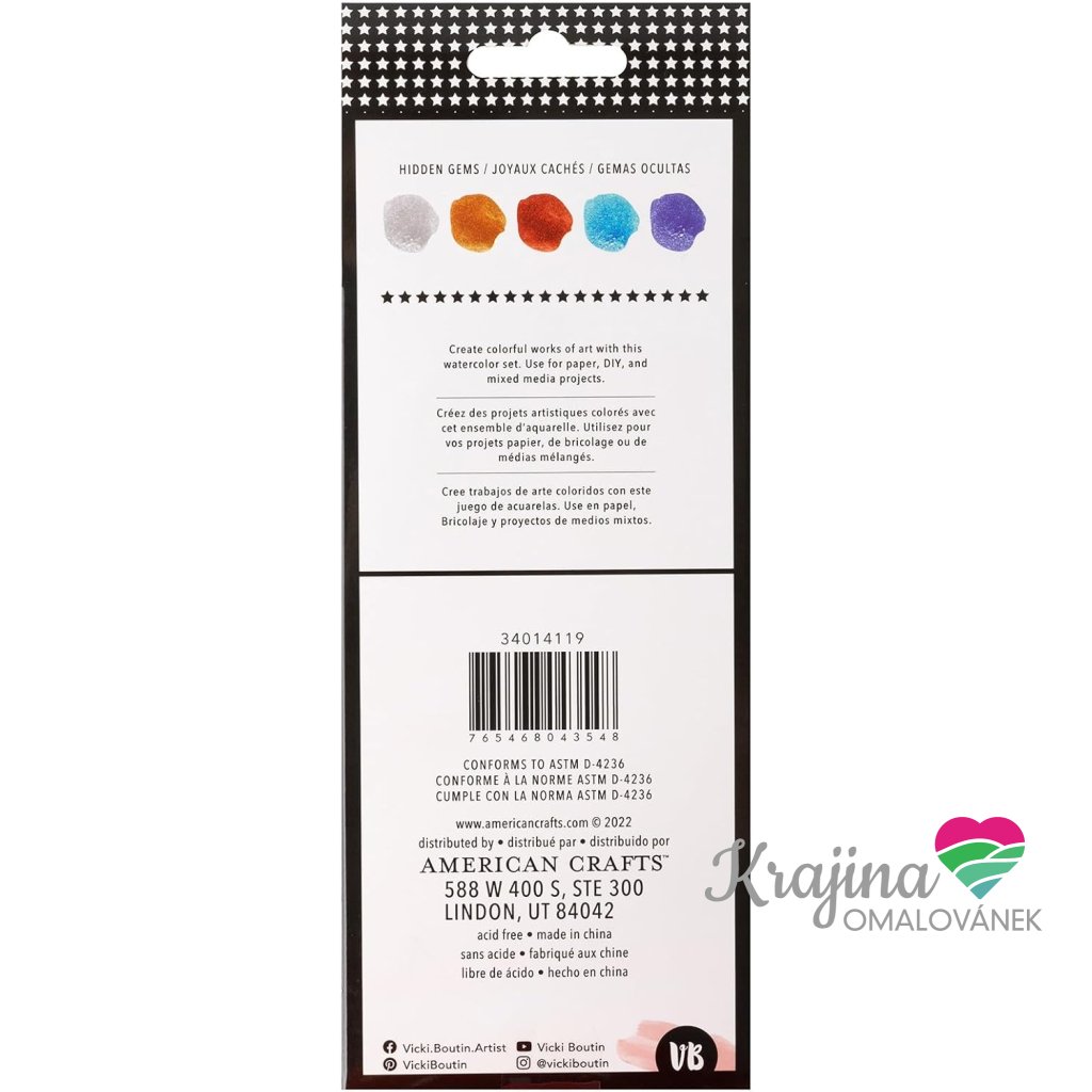 American Crafts, 34014119, Vicki Boutin, sada akvarelových barev, metalické, 6 ks