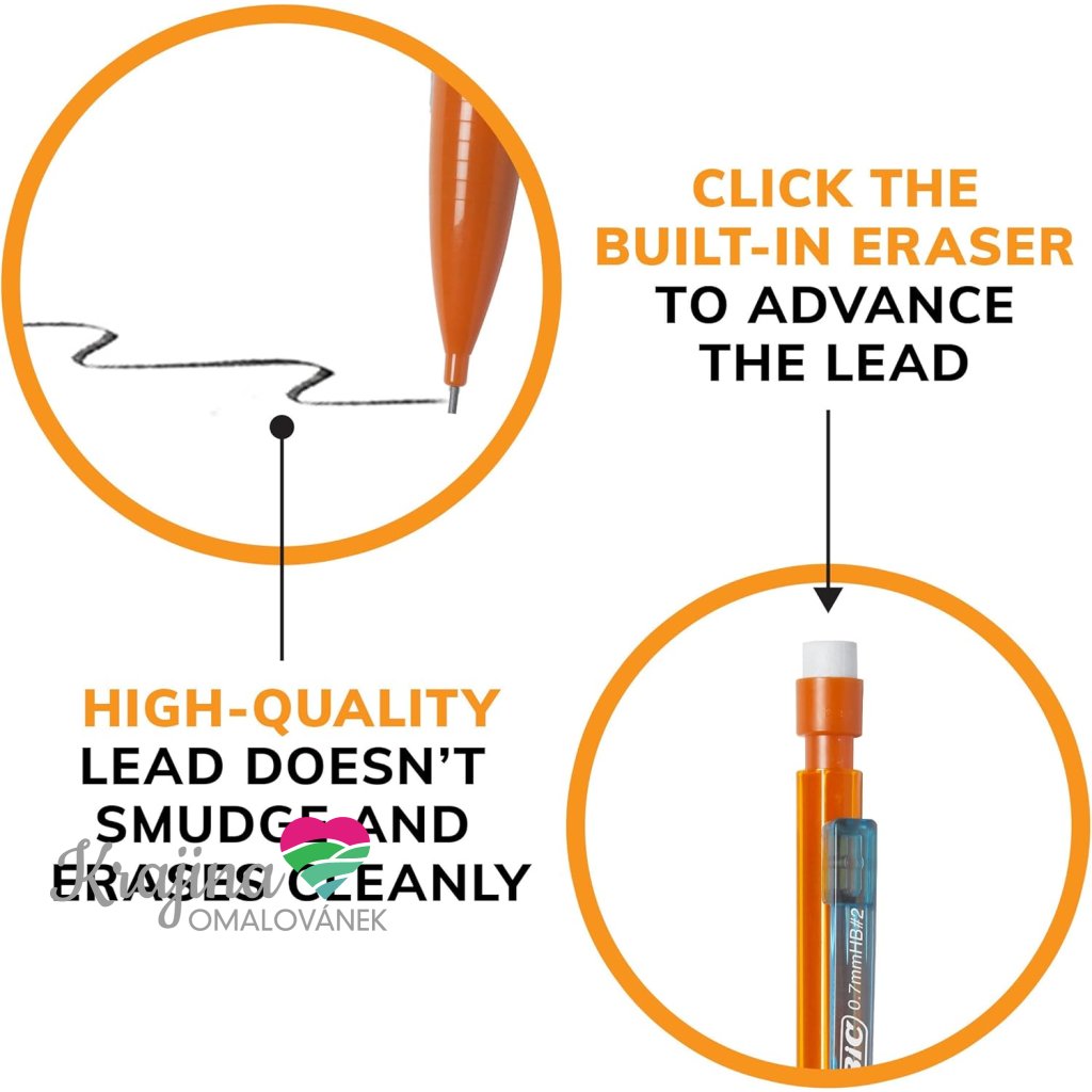 Kvalitní mikrotužka značky BIC s průměrem tuhy 0,7 mm a tvrdostí HB je vhodná do školy i kanceláře.