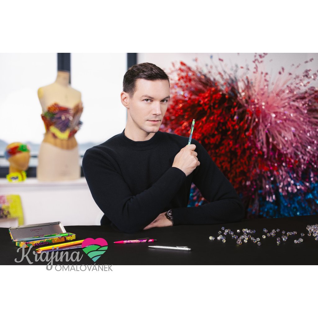 Švýcarský návrhář Kévin Germanier je jedním z nejvýraznějších hlasů současné módní scény. Známý svou schopností proměnit textilní odpad v haute couture, vytváří modely, které nosí Beyoncé, Lady Gaga nebo Taylor Swift. V roce 2024 navrhl kostýmy pro závěrečný ceremoniál olympijských her v Paříži a v lednu 2025 debutoval na přehlídce Haute Couture. Jeho práce posouvá hranice krásy, funkce a odpovědnosti – a v kolekci s Caran d'Ache dokazuje, že luxus může být odvážný i udržitelný zároveň.