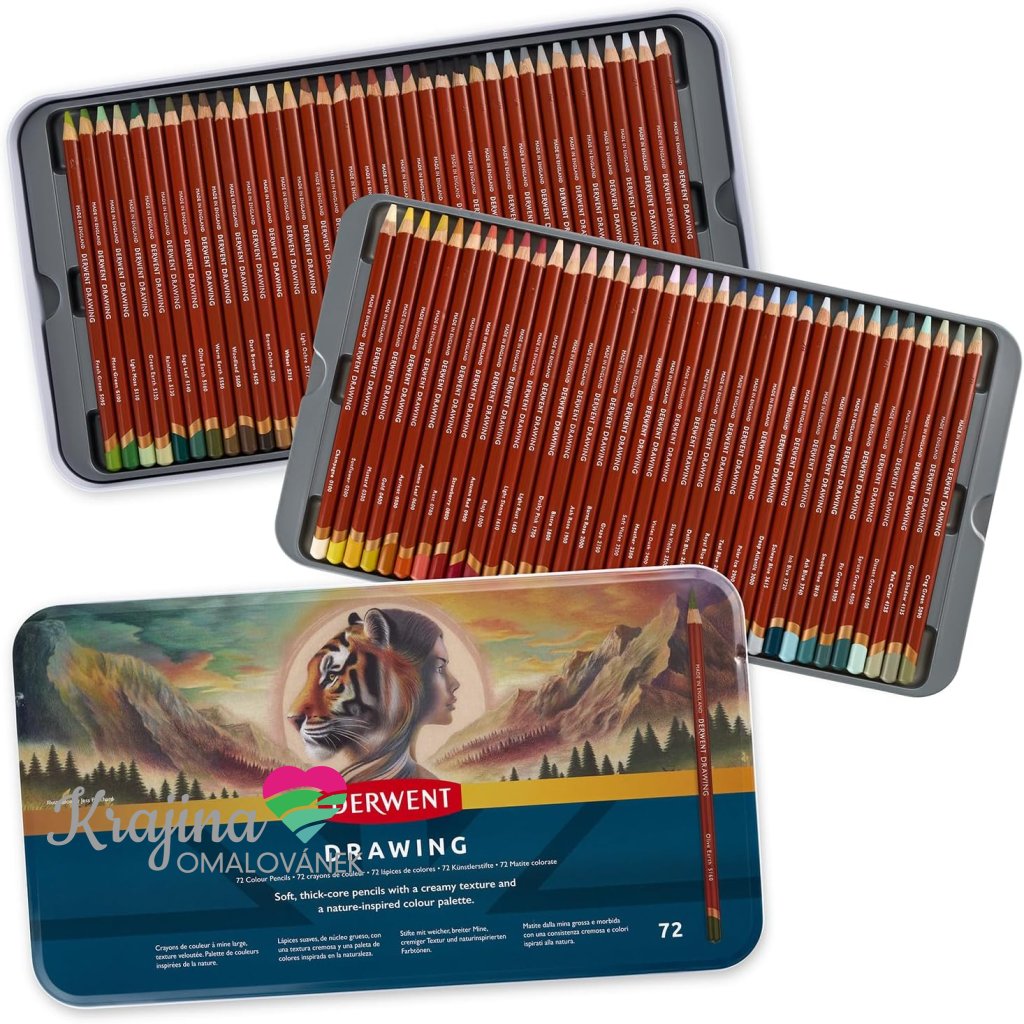 The professional Derwent Drawing pencils offer a unique collection of 72 natural shades presented in an elegant metal tin.