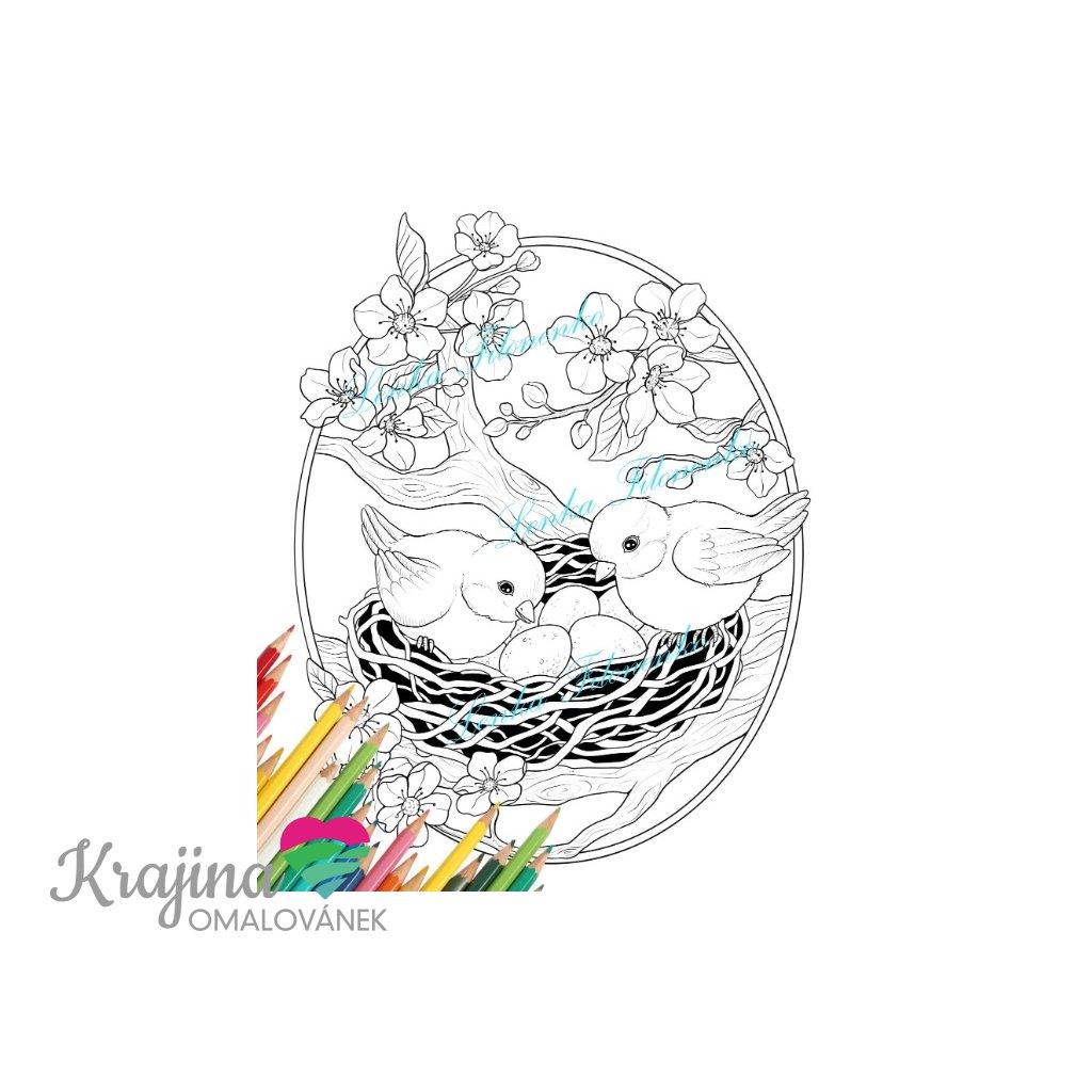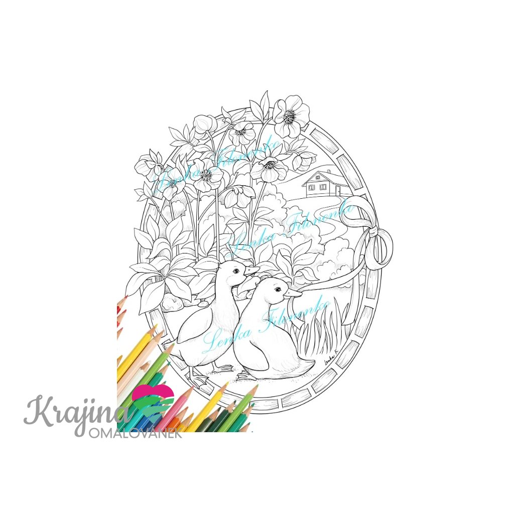 Každý obrázek je vkreslen do oválu, který evokuje velikonoční vejce a ještě víc podtrhuje jarní náladu celých omalovánek.