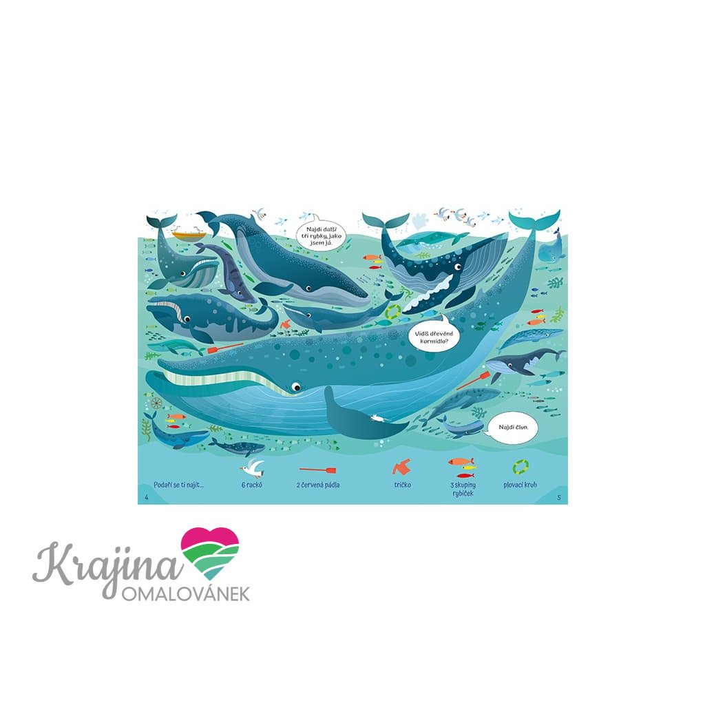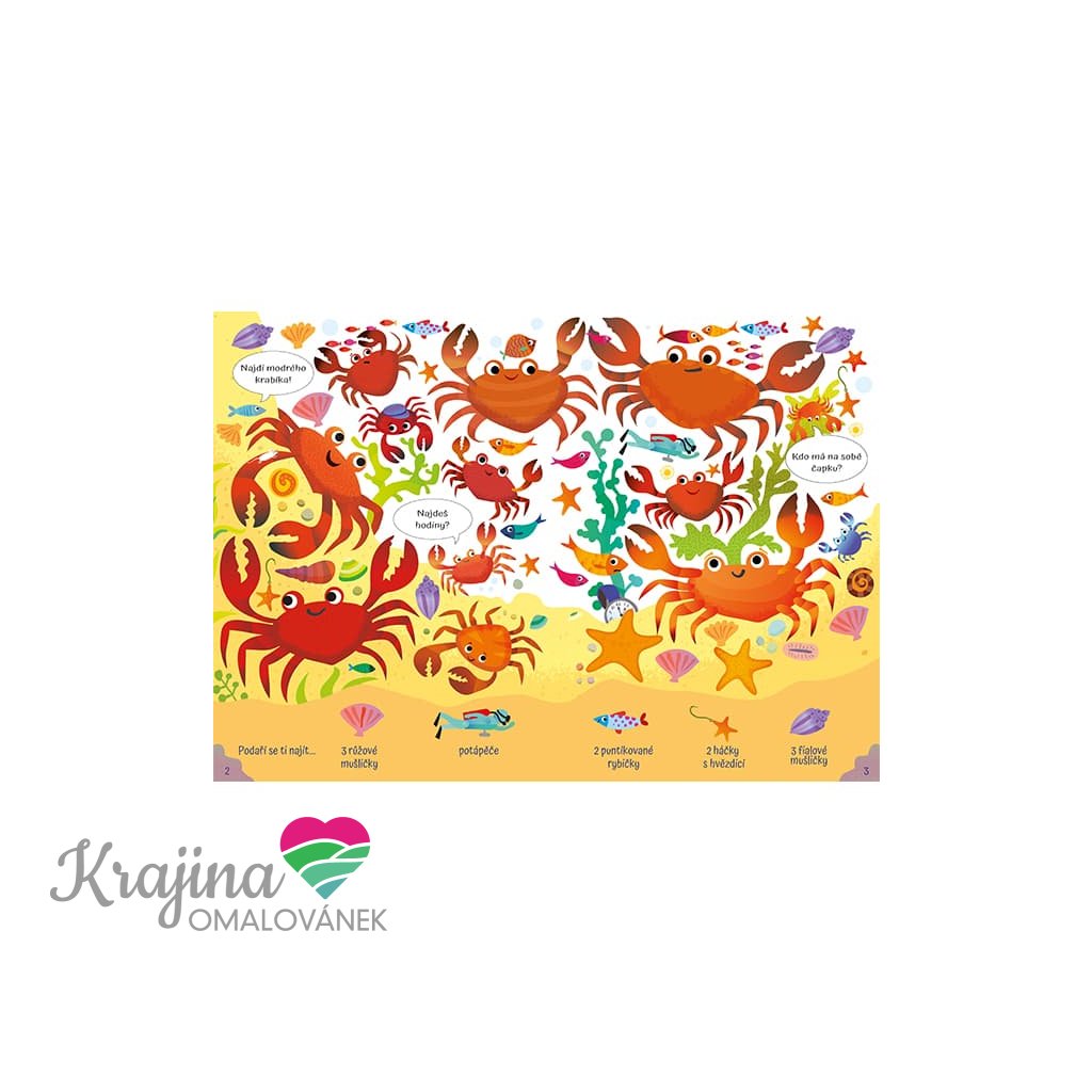 32 pages of sea creatures, fish, crabs and shells to find and count.