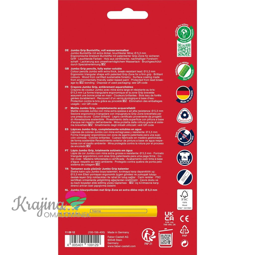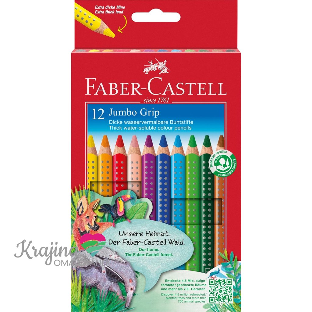 Faber-Castell, 110912, Colour Grip Jumbo, sada ergonomických akvarelových pastelek, 12 ks