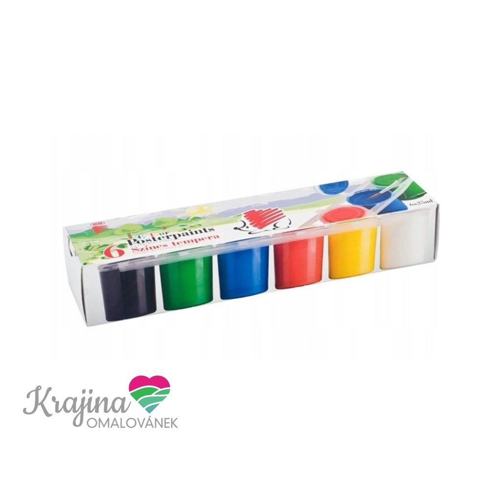 Temperové barvy ICO Ježek dodávané v šesti kelímcích po 25 ml přinášejí základní paletu: černou, zelenou, modrou, červenou, žlutou a bílou
