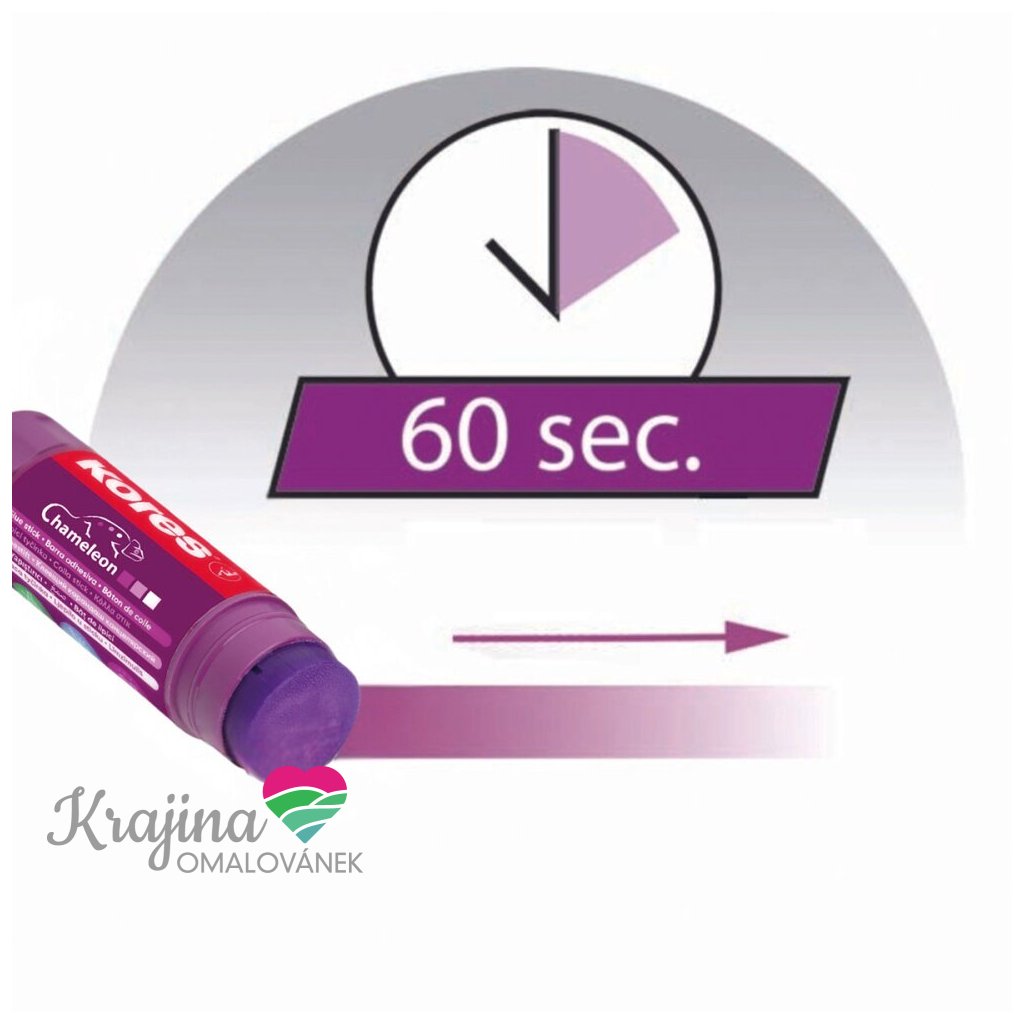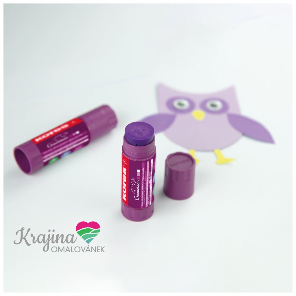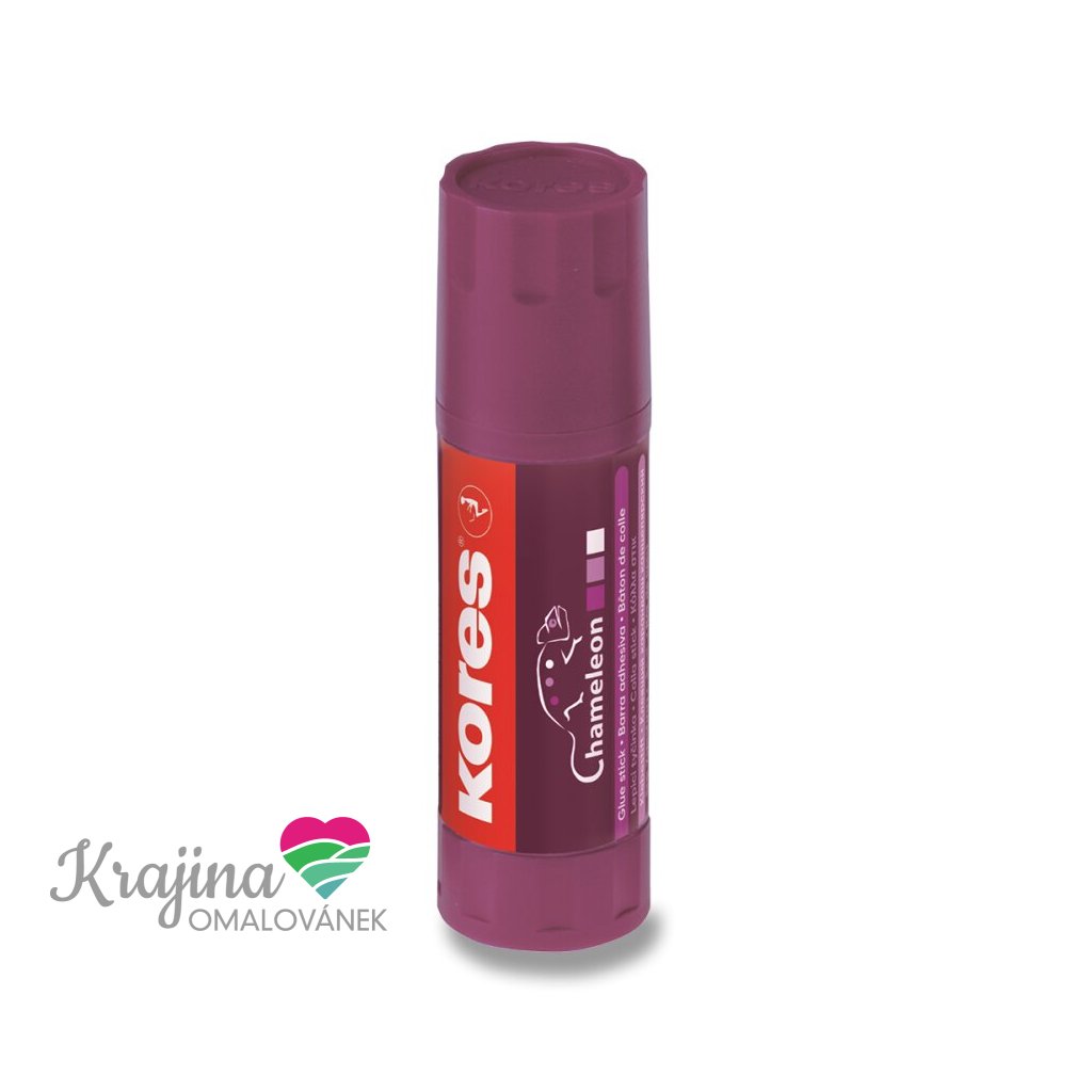 Lepicí tyčinka Kores Chameleon, nabízí barevné nanášení lepidla, které je po zaschnutí dokonale průhledné.
