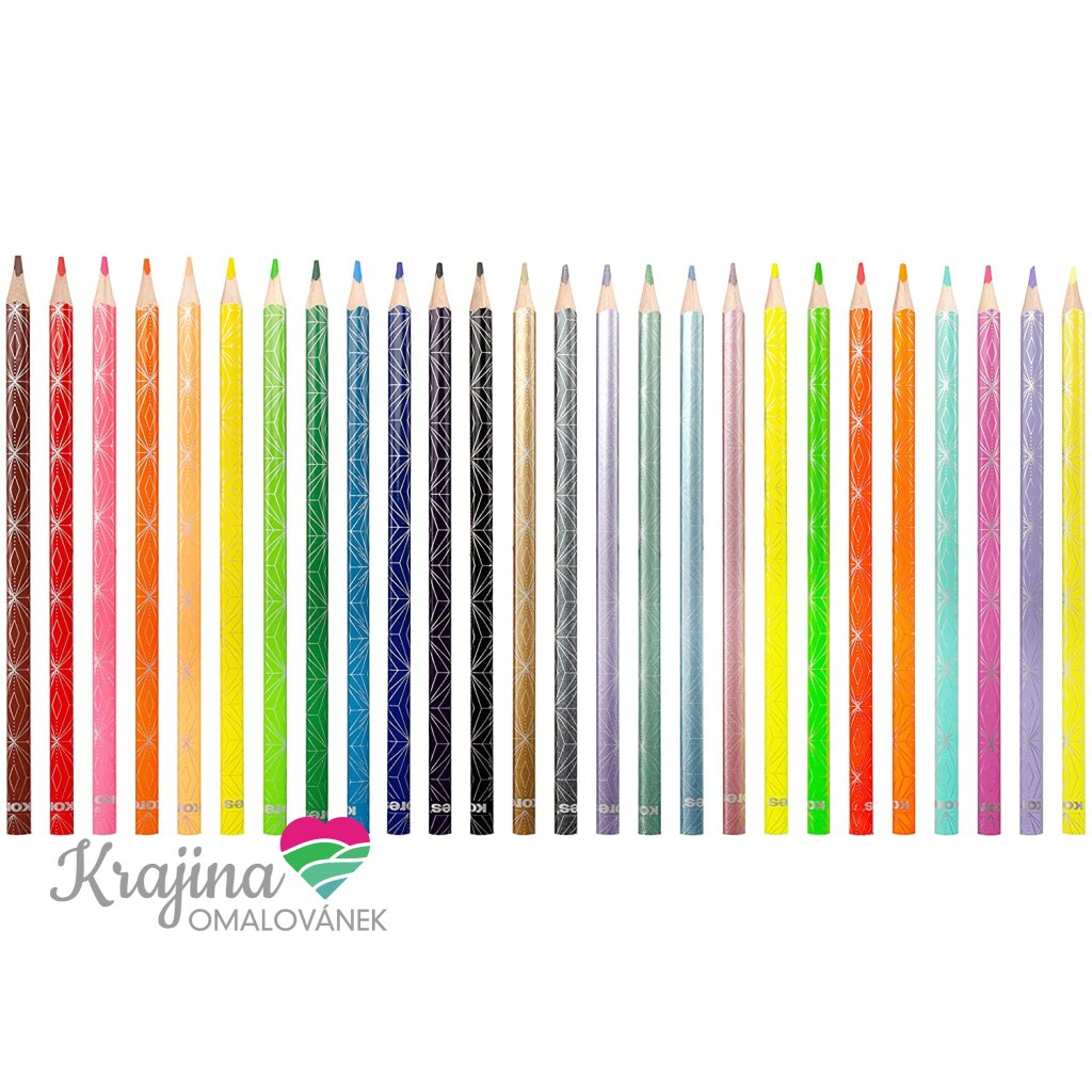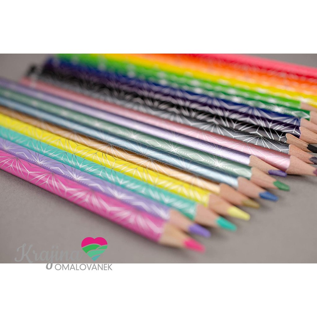 V sadě je 26 odstínů pastelek (6 metalických, 4 neonové, 4 pastelové a 12 základních odstínů).