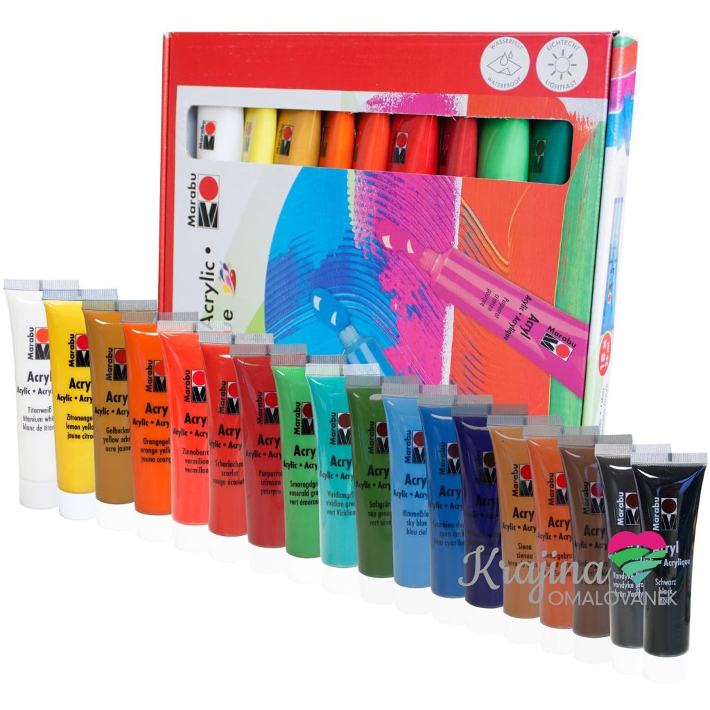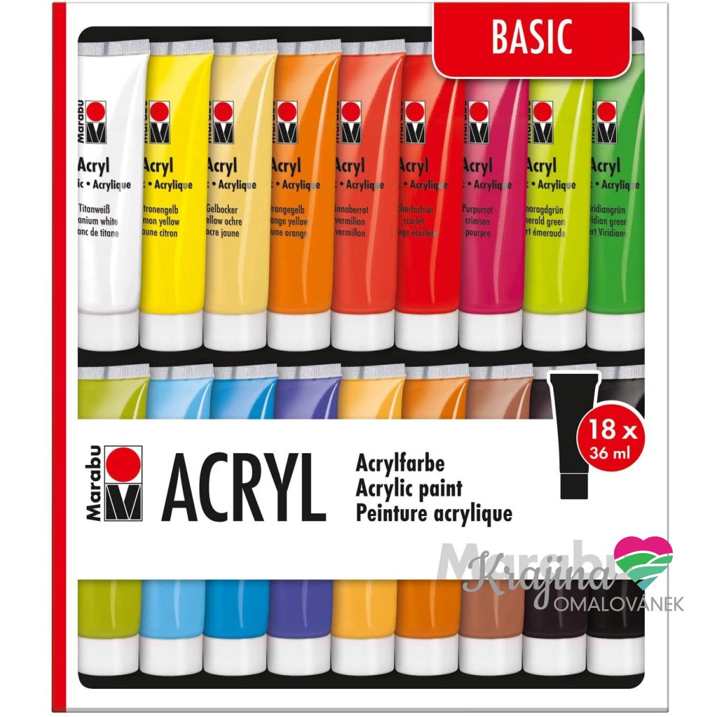 Marabu, 121000201, sada akrylových barev, 36 ml, basic, 18 ks