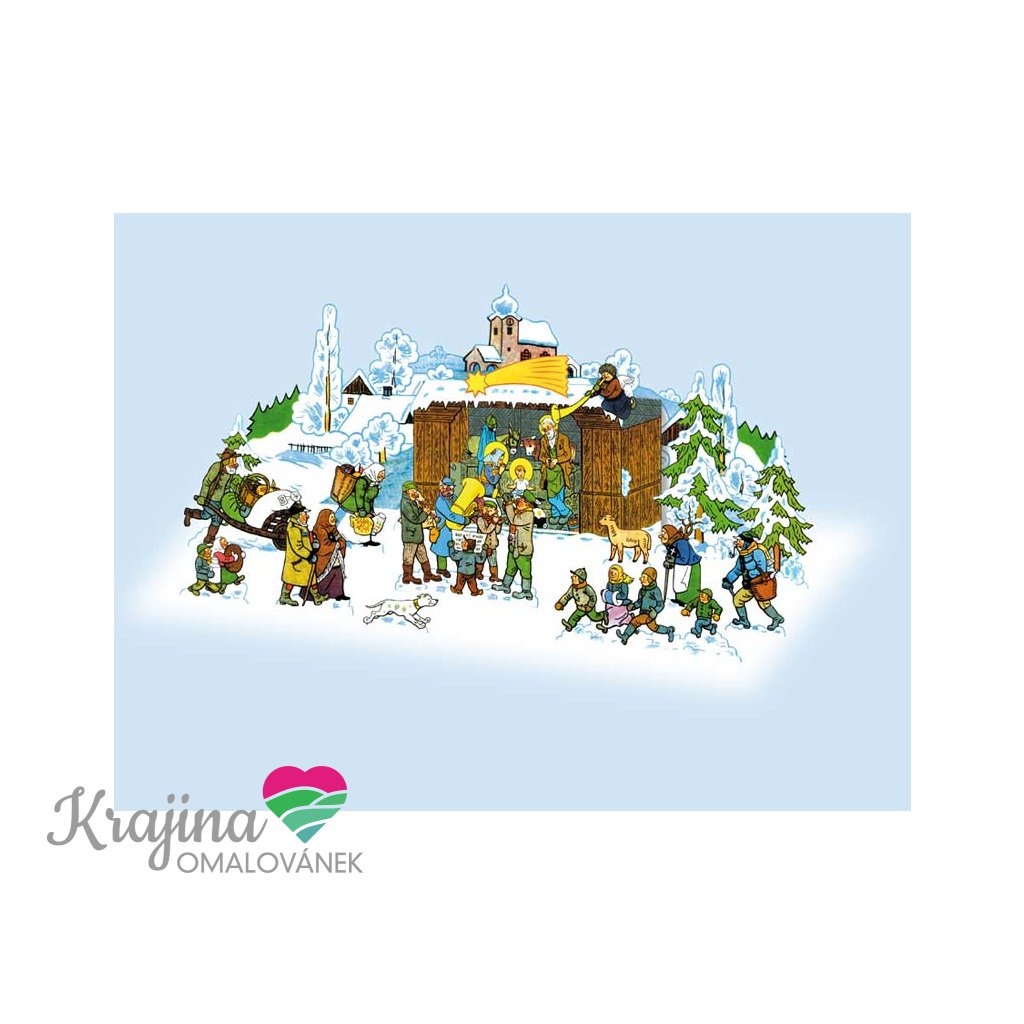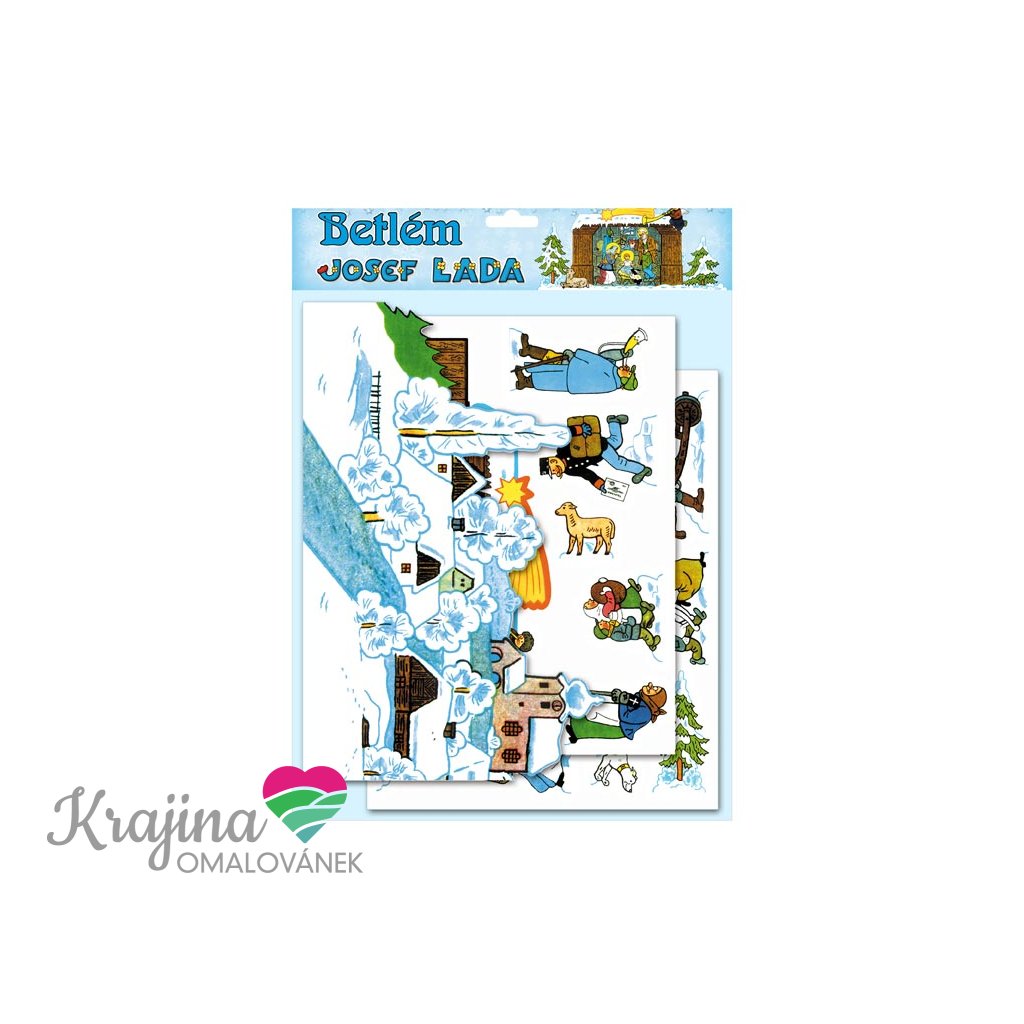 Jednoduše sestavitelný betlém, s půvabnými kresbičkami Josefa Lady.