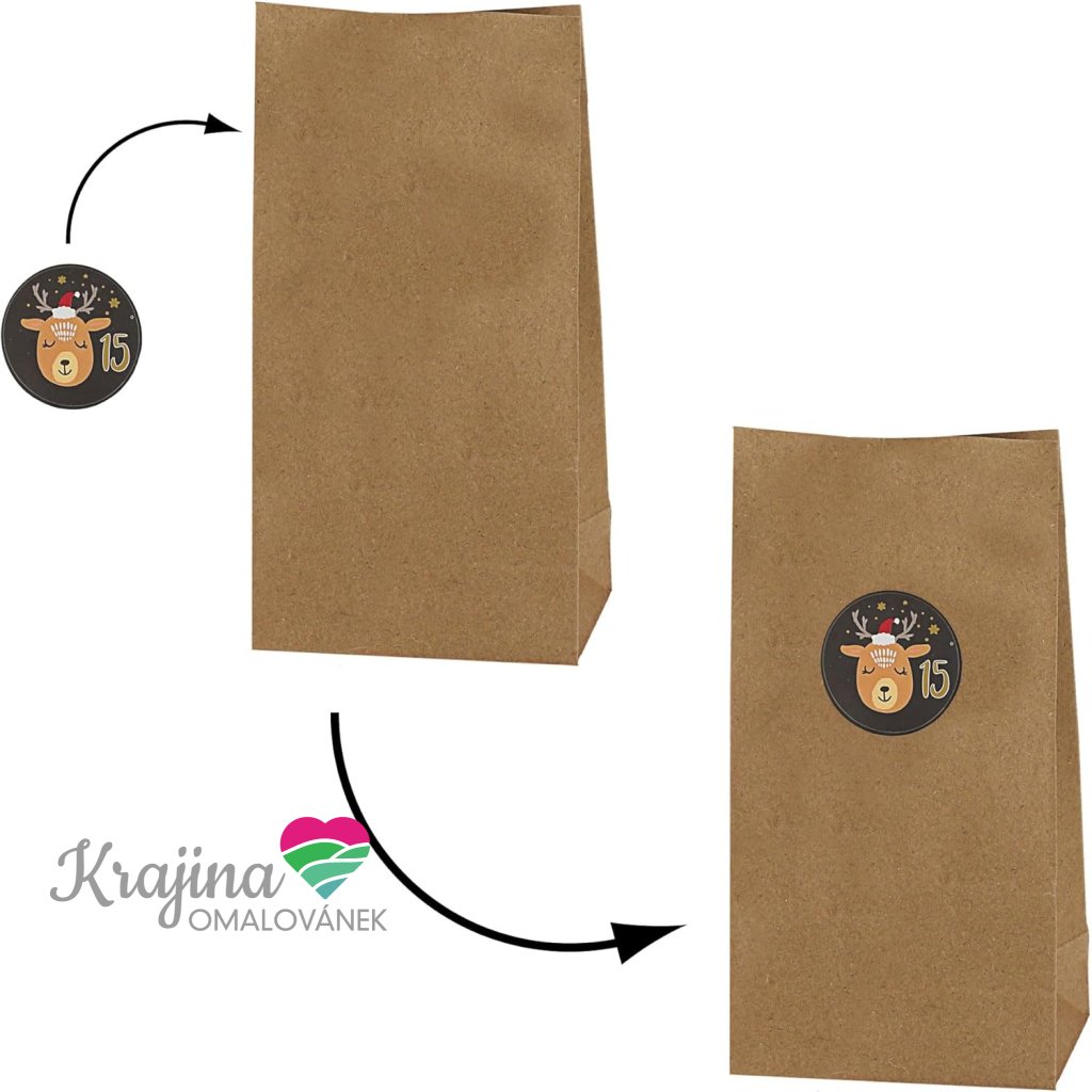 24x papírový pytlíček s vánočním potiskem (18 x 9 x 5,5 cm), papír s certifikací FSC (dřevo z lesů, kde se hospodařilo trvale udržitelným způsobem)