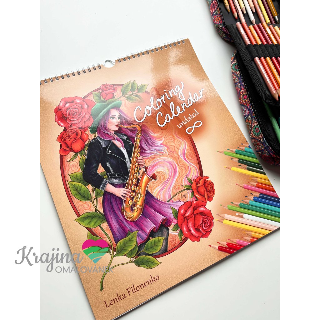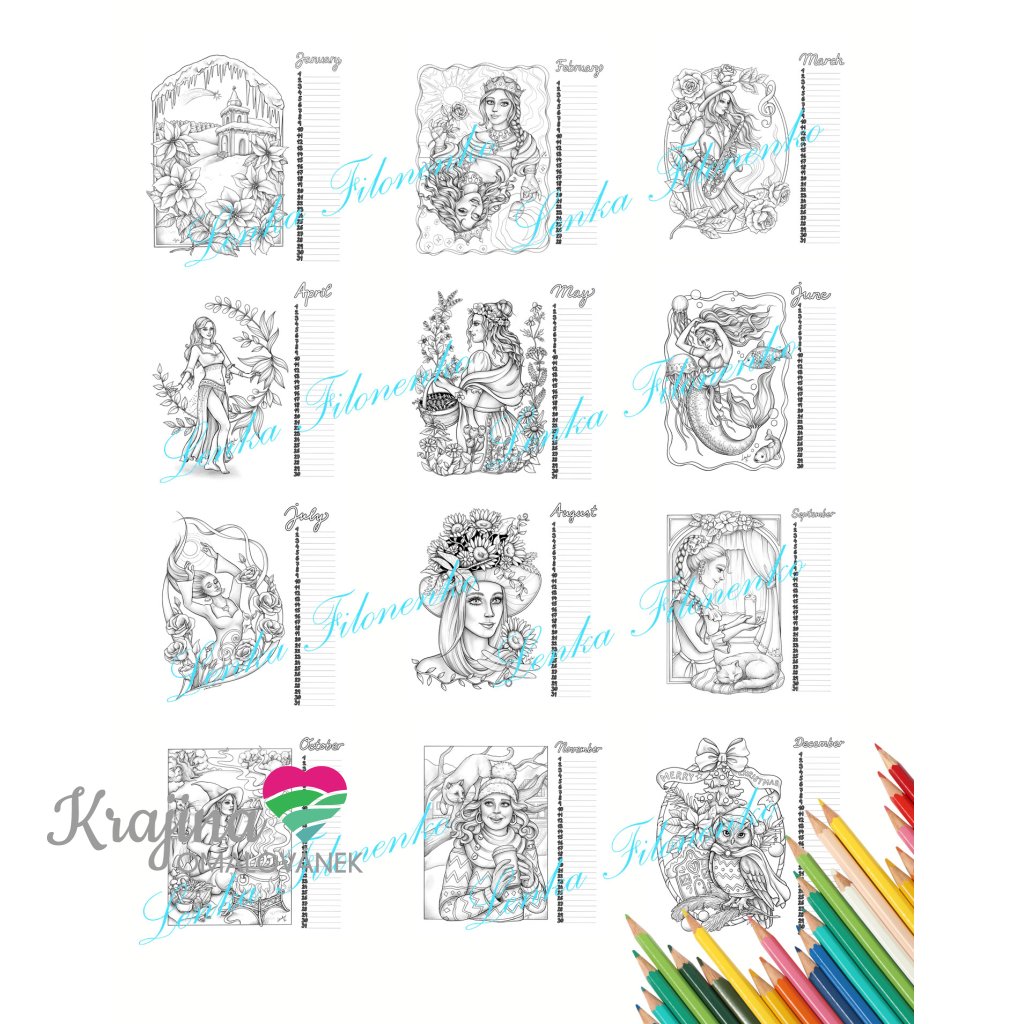 Omalovánkový kalendář bez datace, s podpisem autorky, A3, Lenka Filonenko