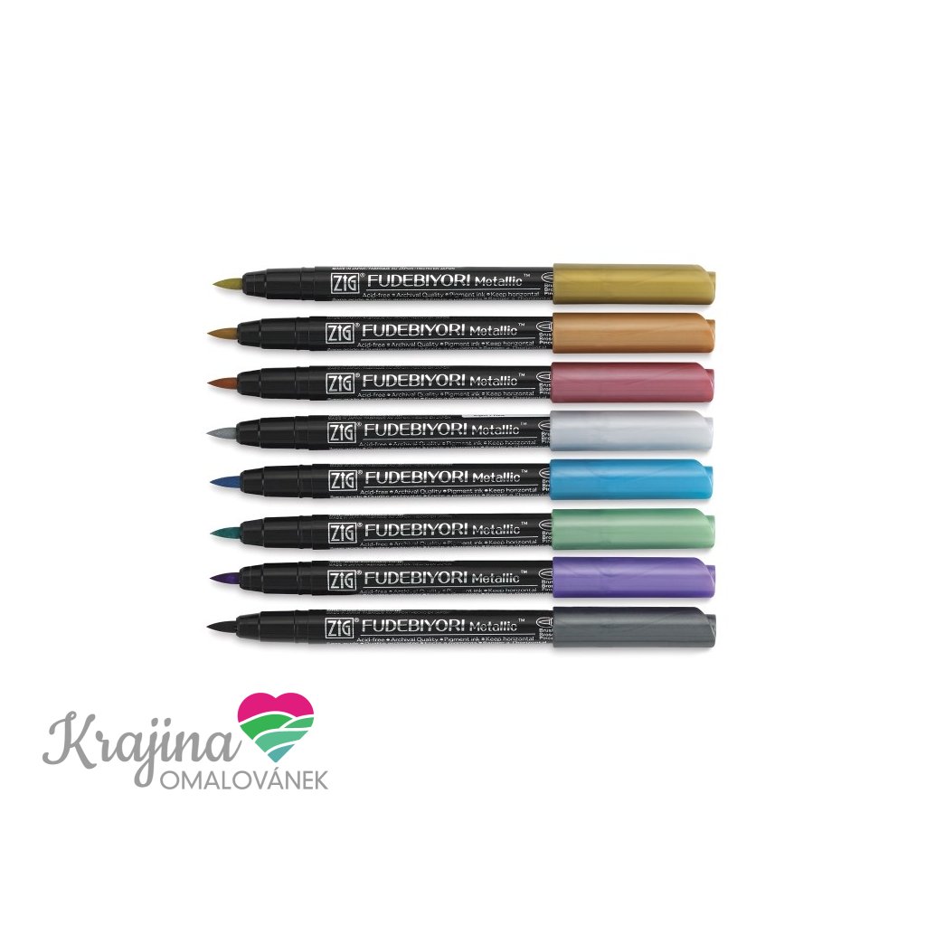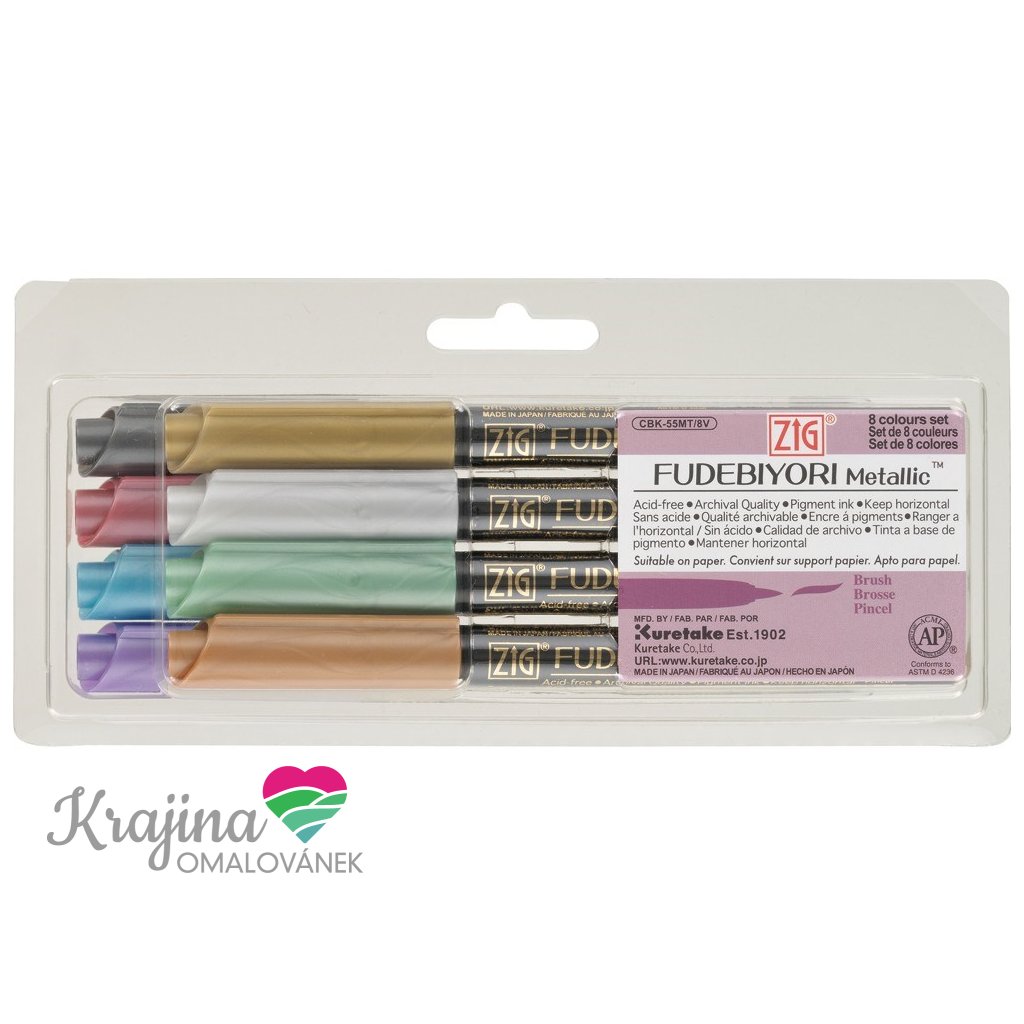 Kuretake, CBK-55MT/8V, Zig Fudebiyori Metallic Brush Pens, zestaw pędzli, markery metaliczne, 8 szt.