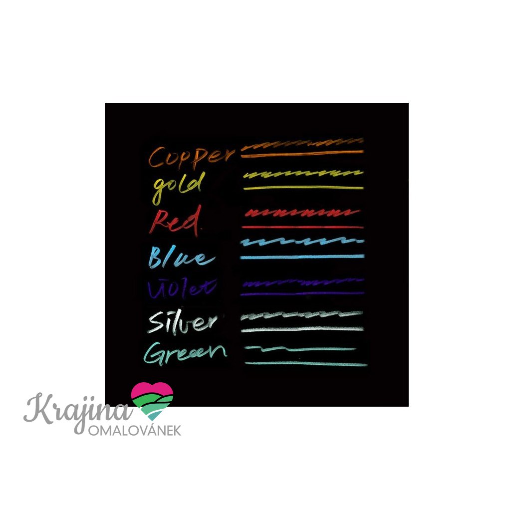 Metaliczne kredki do czarnego papieru albumów fotograficznych.