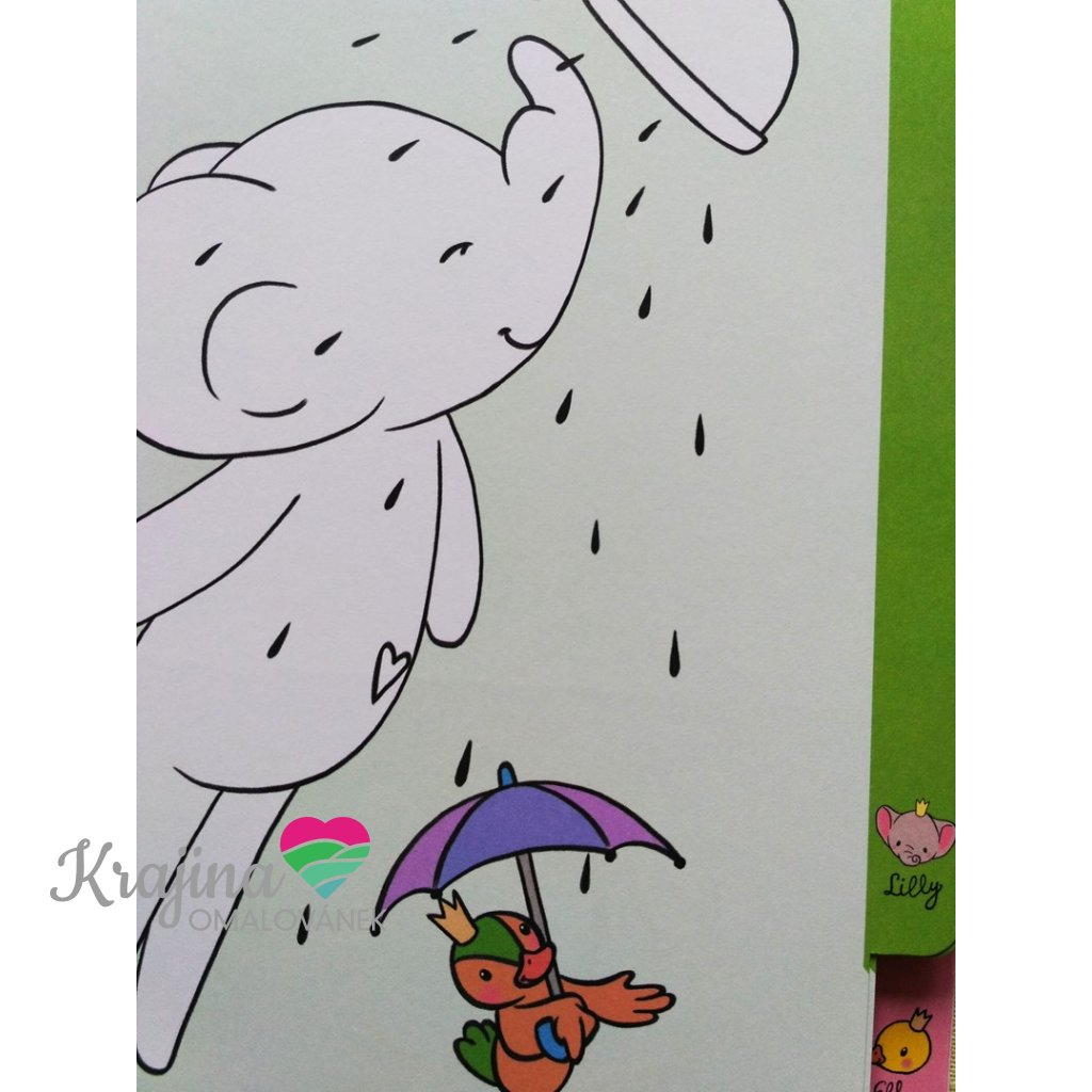 Obrazki mają radosne, kolorowe tło, które zachęca do pomalowania reszty rysunku w żywych kolorach.