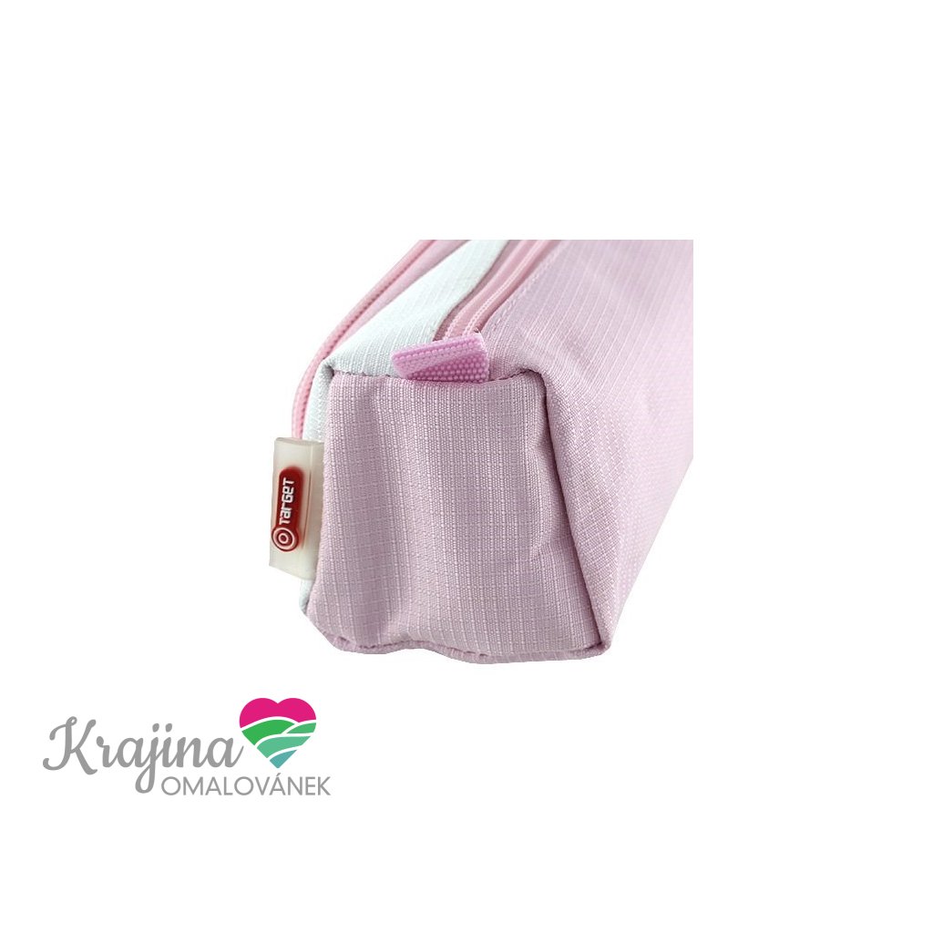 Etui składa się z dwóch kieszeni zapinanych na suwak. Mniejsza przednia kieszeń zawiera gumki do przechowywania ołówków i kredek.
