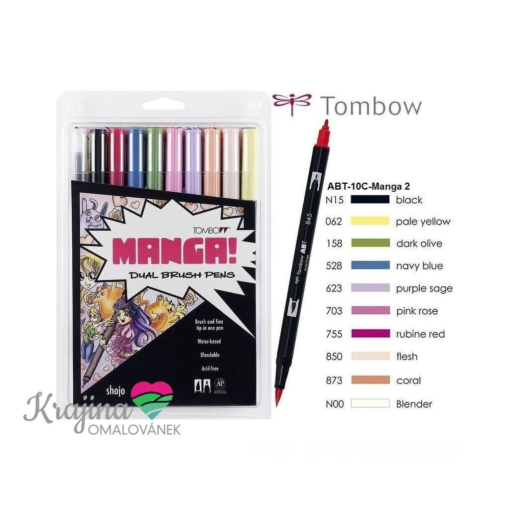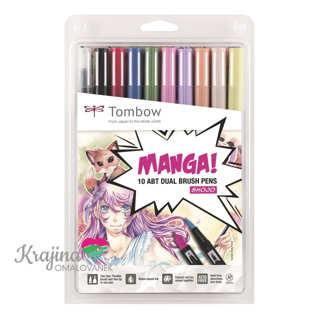 Tombow, ABT-10C-MANGA2, długopis ABT Dual Brush, dwustronne markery, zestaw Manga Shojo, 10 szt.