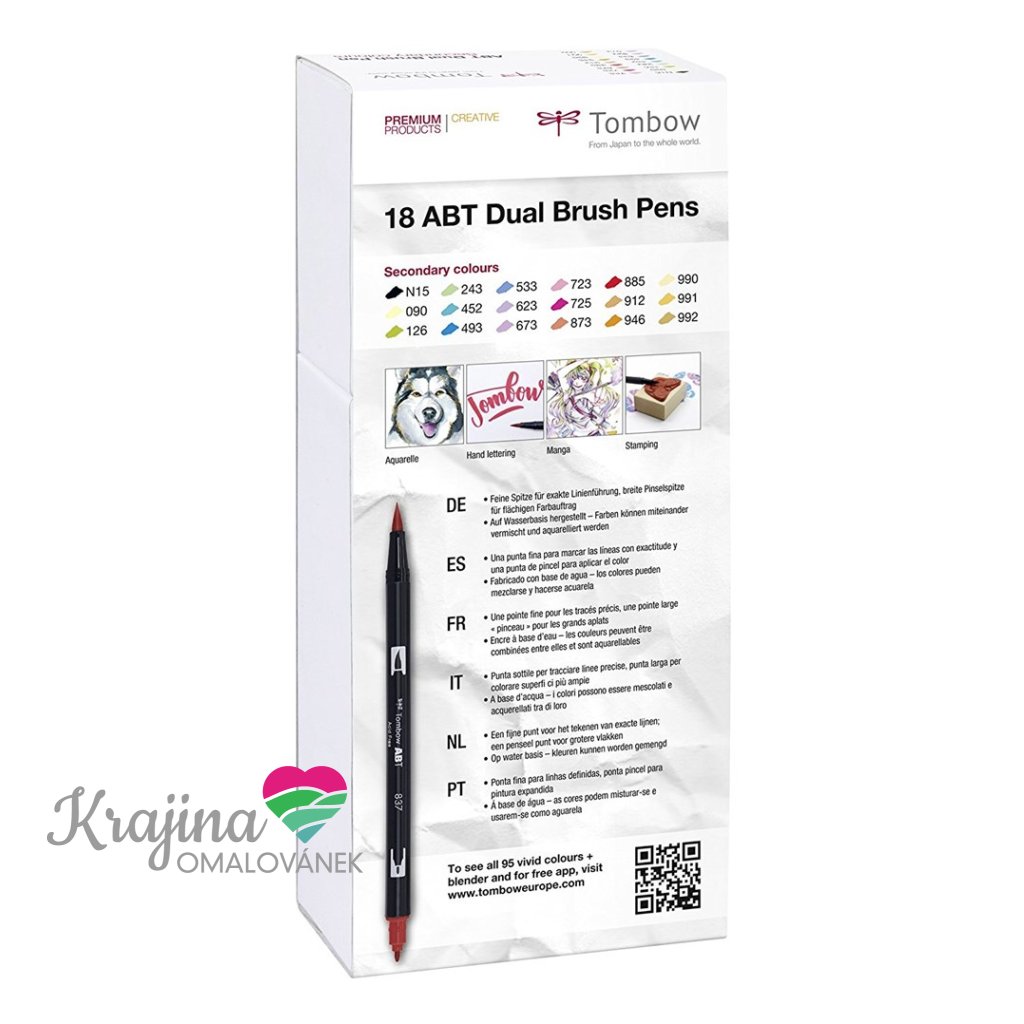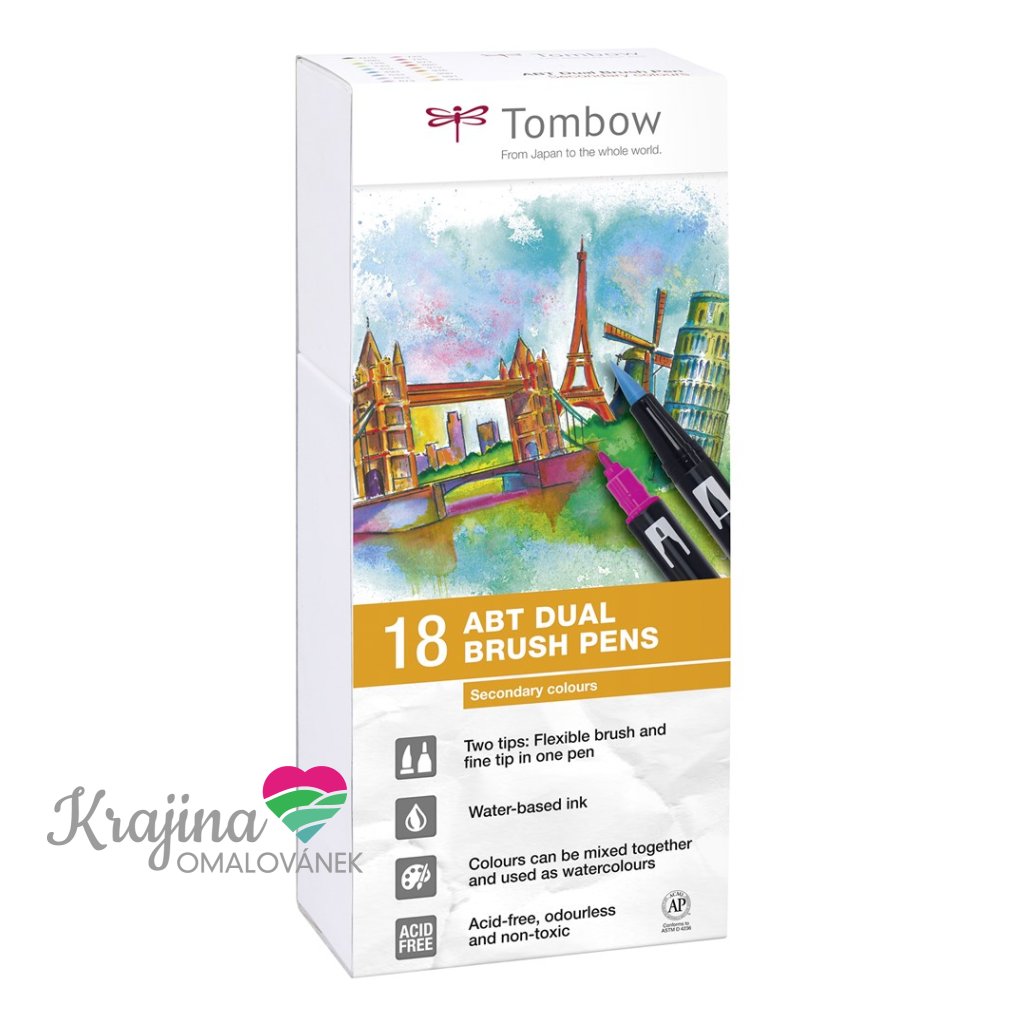 Tombow, ABT-18P-2, pisak ABT Dual Brush, dwustronne markery, ton wtórny, 18 szt.