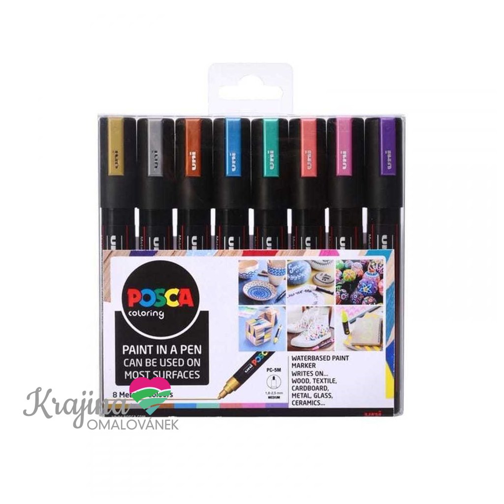 Uni-ball, 153544855, Posca, markery akrylowe, zestaw metaliczny, 8 szt.