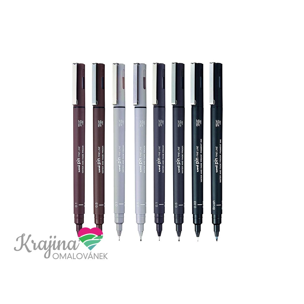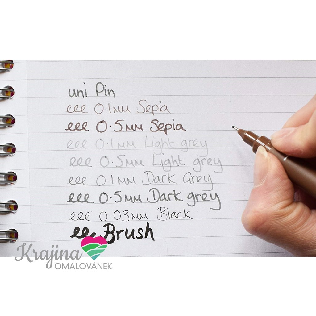 Uni-ball, 153544971, zestaw PIN-ów, markery liniowe i pędzelkowe, sepia, szary, czarny, 8 szt.