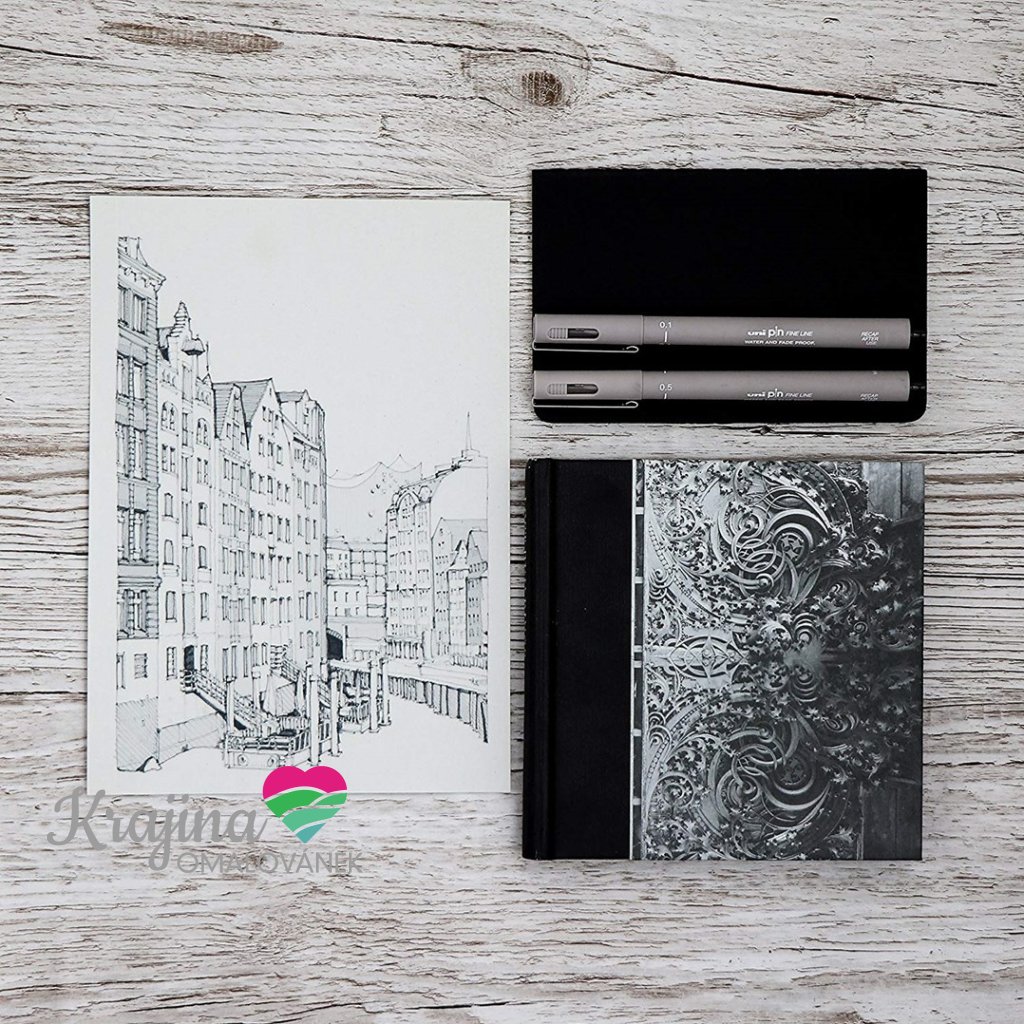 Szerokość końcówek eyelinera wynosi 0,1 mm, 0,5 mm (sepia, jasnoszary/ciemnoszary), 0,03 mm, 0,1 mm i 0,5 mm (czarny).