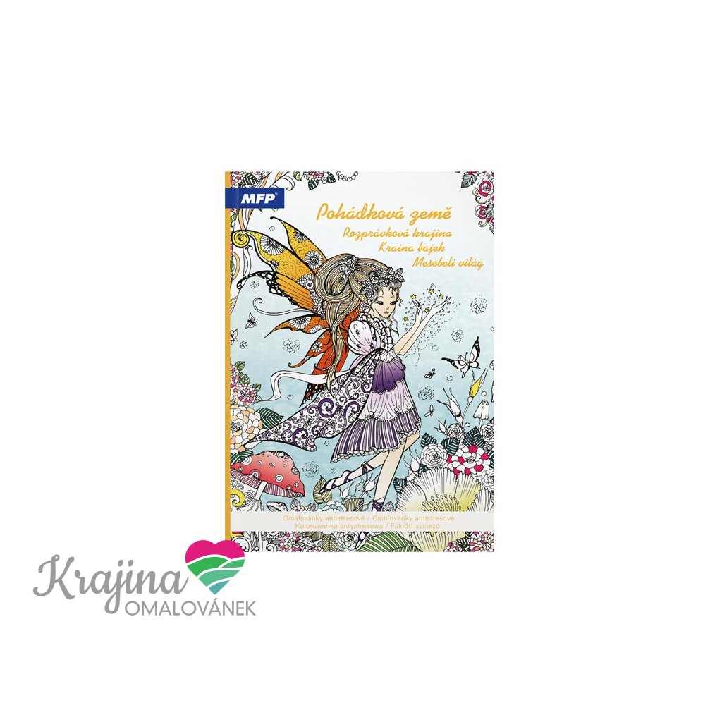 Objevte antistresové omalovánky Pohádková země, kde na vás čekají víly, kouzelné hrady, lesy i fantazijní bytosti.