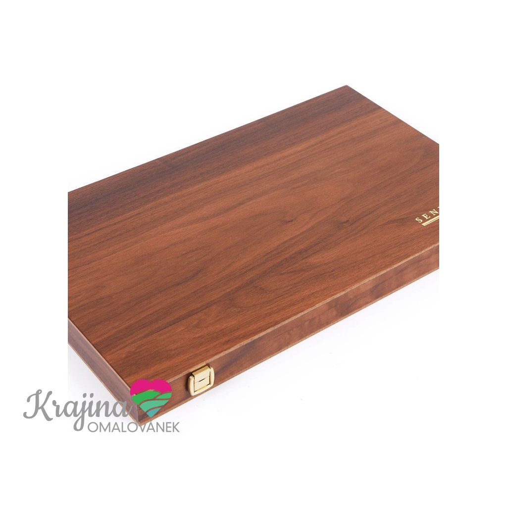 Vše je uloženo do designové kazety z ořechového dřeva. Box se uzavírá kovovou západkou.