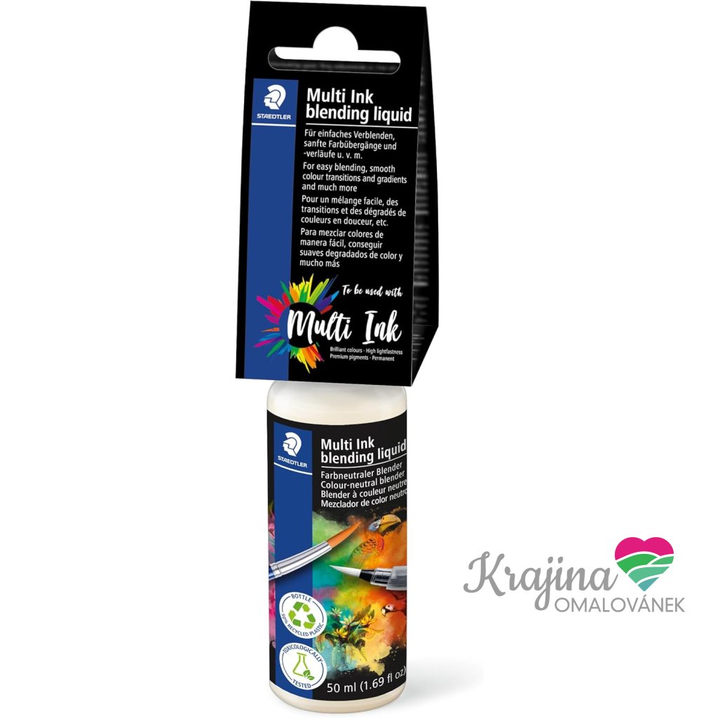 Blendovací tekutina značky Staedtler, funguje jako šikovný pomocník při práci s inkousty, akvarelem a dalšími tekutými pigmenty – umožňuje hladké míchání barev, jemné přechody a gradace, které dodají kresbě hloubku a profesionální vzhled.